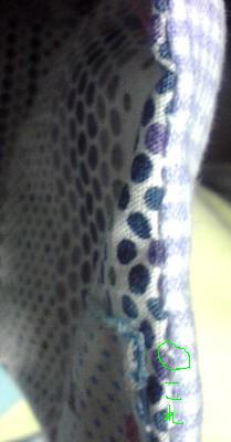 今度は表布は切り返しにして、単調なので、ハギレを縫いつけ。