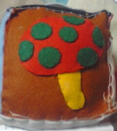 キノコを切り取った残りのフェルトで模様を作ってみたりしたそうです。