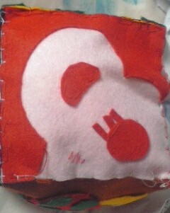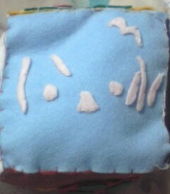 みんなが自分よりも早かったので、「なんでそんなに早いん?」と聞いたところ、模様を縫い付けずボンドで貼っていることを教えてもらい、途中からボンドに変更。(と言っても一面だけだが)