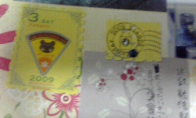 切手のカレンダー(黄色)を切り離して、写真の日付と2009年の消印をハリハリ。