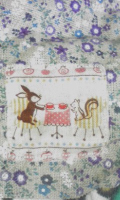 今度は表布は切り返しにして、単調なので、ハギレを縫いつけ。