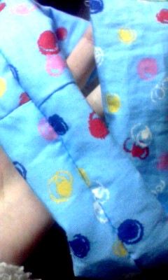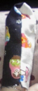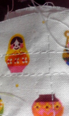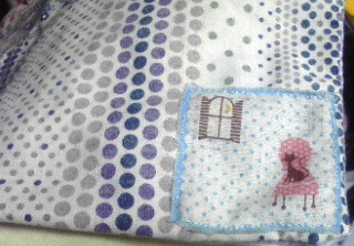 今度は表布は切り返しにして、単調なので、ハギレを縫いつけ。